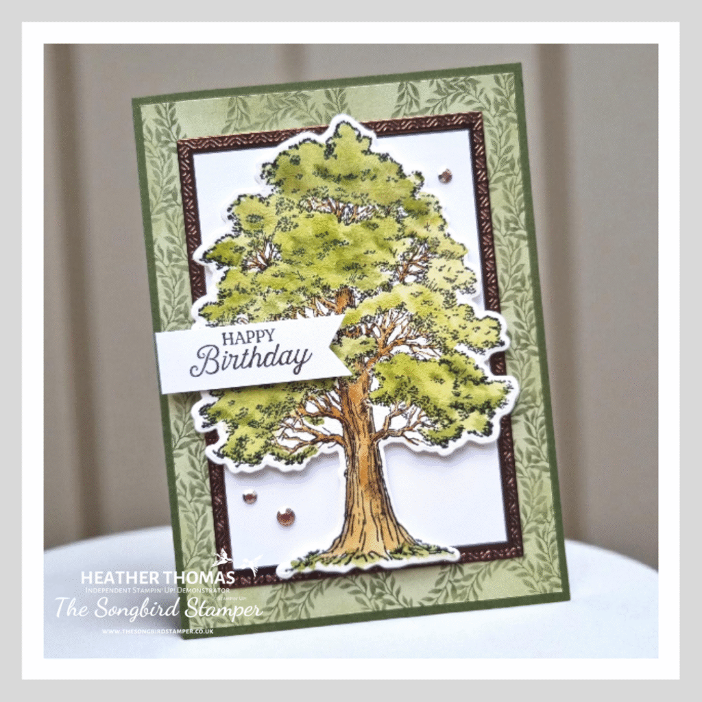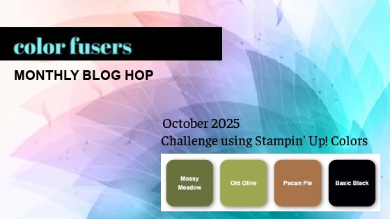 Hello and welcome to this month’s Color Fusers Blog Hop where we are working with the colours Basic Black, Pecan Pie, Mossy Meadow and Old Olive – the perfect combination for this card made with the Autumn Trees bundle. I have had a little play with watercolouring here and love how the tree itself is the star of the show.