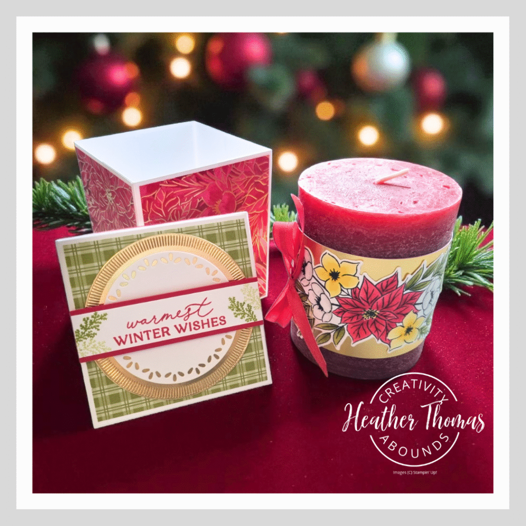 I had some lovely red candles hanging around in my craft room, so decided to use the Traditions of Christmas Suite to decorate one and make a lovely little gift box for it. Sadly these papers are out of stock at the moment in the UK, but you can recreate this with any colour candle and any papers that you have, so happy choosing!