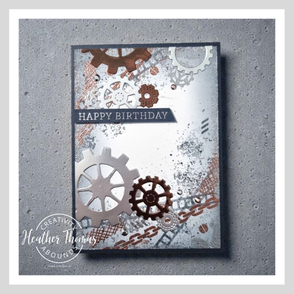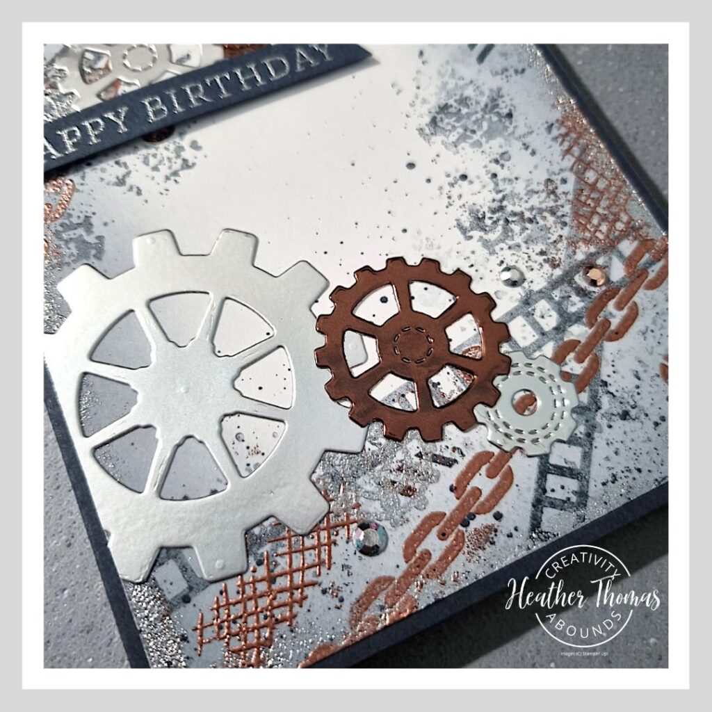 So, today I am stepping out of my comfort zone and getting a little bit inky (literally!) with the soon to be released Gears and Textures bundle. This set is absolutely perfect for those masculine cards or for anyone who loves a bit of a steampunk, industrial vibe. It’s not often we see something this grungy, but I have had so much fun playing with it.