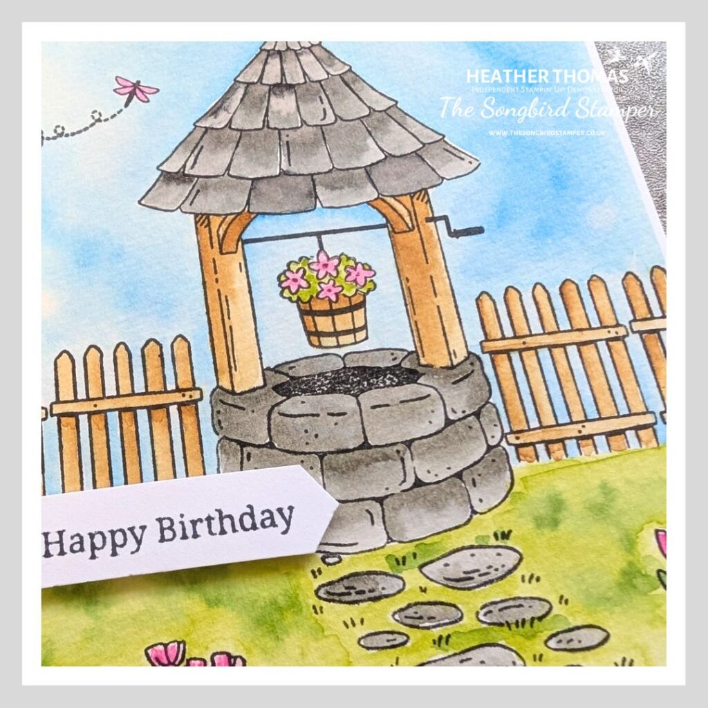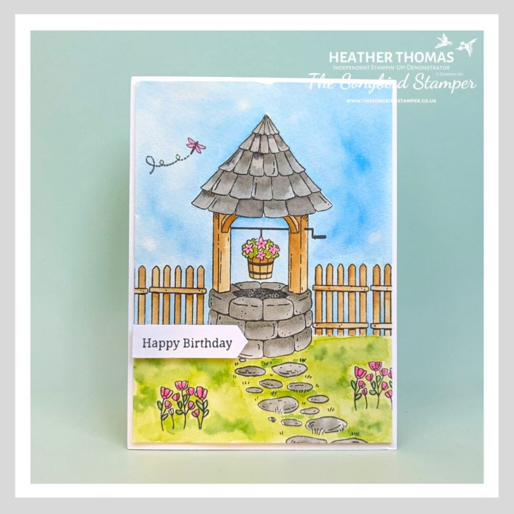 I used the fabulous ‘Make a Wish’ standalone stamp set for this card, and it really is so simple. Just take some waterproof ink (like StazOn or Versafine) and stamp the images into a scene on some watercolour paper. There is no masking involved here, which makes it so much fun to just sit down and stamp.