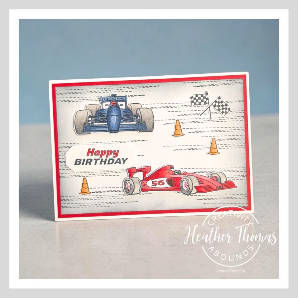 I think I have got the perfect birthday card for a teenage boy for you today, especially if they love racing cars! The creativity abounds blog hop team are focussing on children’s cards this month, and I loved using the new Ready, Set, Go stamp set from Stampin’ Up!